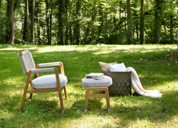 Cesta Outdoor est un accessoire polyvalent. Conçu pour compléter idéalement les canapés et les fauteuils, Cesta Outdoor peut être utilisé comme porte-revues ou comme bac de rangement dans des endroits tels que les terrasses et les patios. Les ouvertures fonctionnelles dans la partie supérieure de Cesta Outdoor facilitent son déplacement. Le caoutchouc polyuréthane tissé est entièrement tissé à la main. Cesta Outdoor est disponible en deux tailles et dans une palette de couleurs sophistiquées allant des tons de terre au bordeaux et au vert olive.